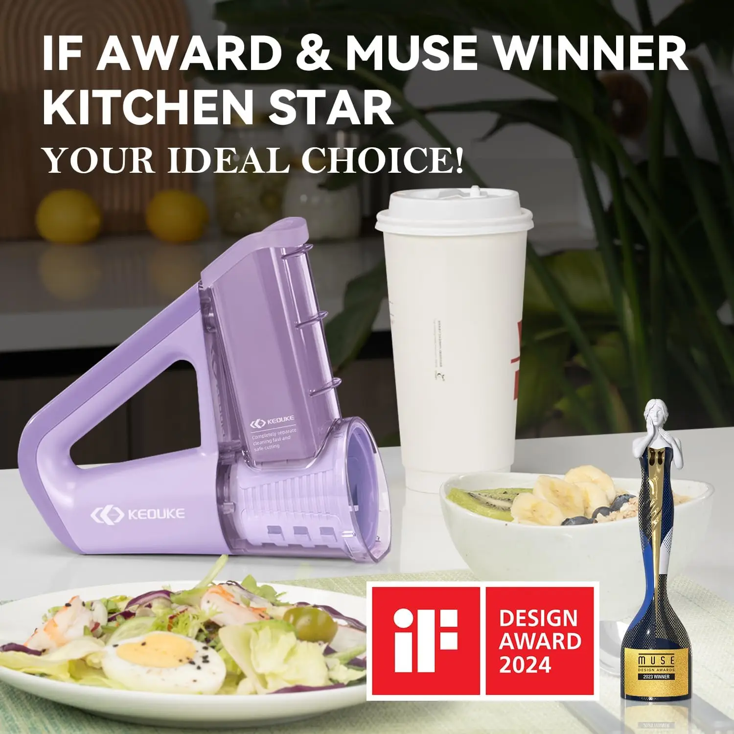 - Exquisite Design - This electric rotary grater is not only functional and practical, but also won the IF Design Award and the US MUSE Design Award for its exterior design. A stylish new choice in the kitchen. It has been packed in good condition and can be used not only as a great addition to your own kitchen preparations, healthy salads and summer smoothies, but also as a practical and creative gifting option.