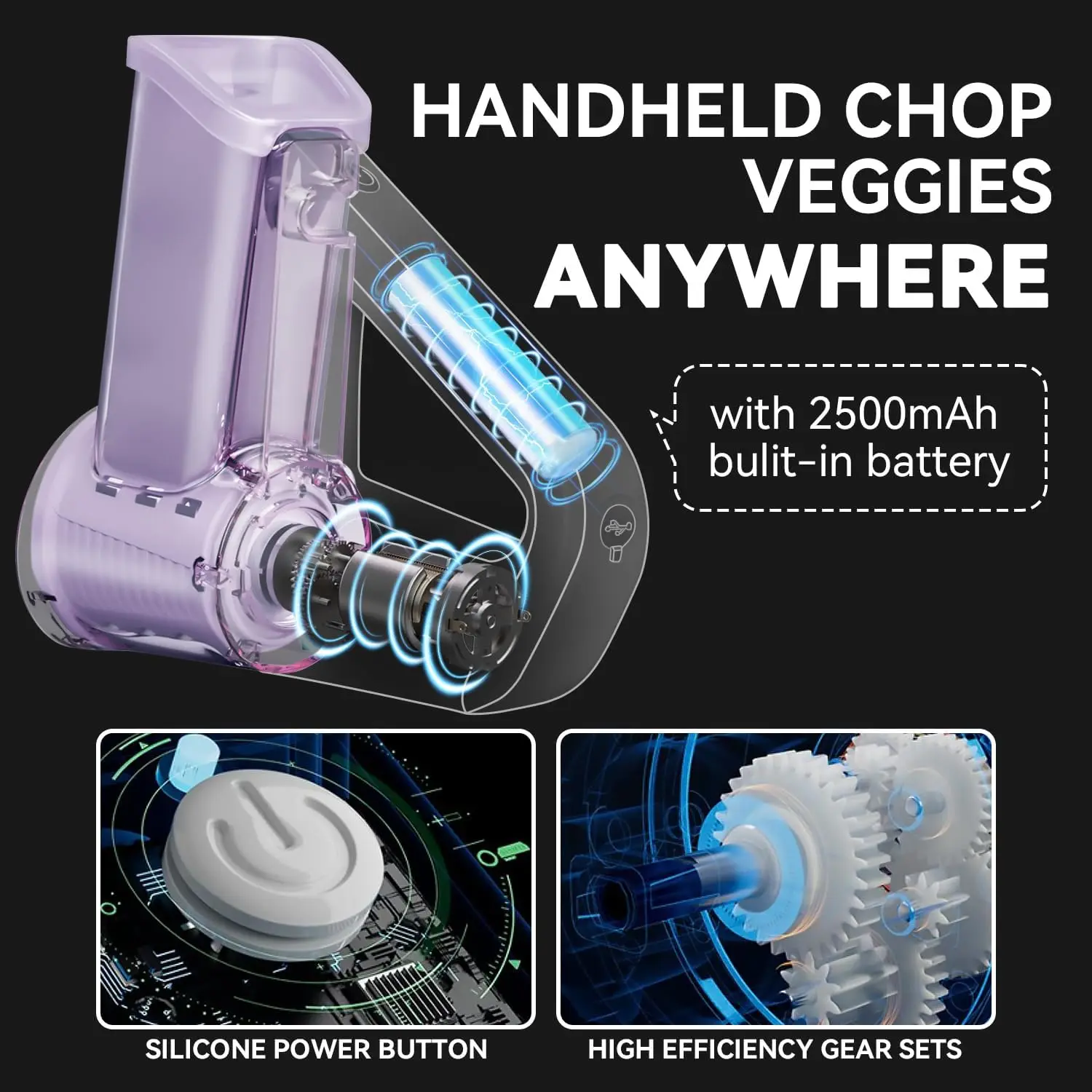 - Dual Power Button - The chopper is designed with two power buttons, one for handheld use and the other in the charging port, designed for future expansion. The chopper is easy to use. The charging port is type-c charging port, gently lift the dust-proof silicone cover to charge.